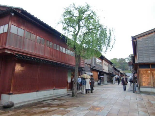 まず訪れたのは、城下町の街並みを色濃く残すひがし茶屋街。石畳や格子戸が印象的。