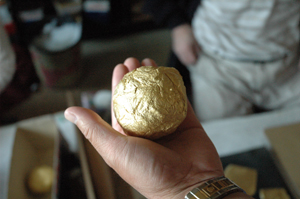 手に持ったこの金の野球ボールほどの塊、ウン十万円の価値があるそうです!