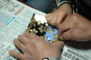 金沢への旅の途中、金沢箔の伝統工芸士である叔父の工房へ。