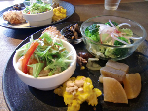 お昼は、町家がそのままお店になった場所で茶がゆと古代米のおこわをいただきました。