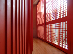 お寺とは思えない外観、蓮の池の下にある本堂、コンクリート×朱色の美しさ…。