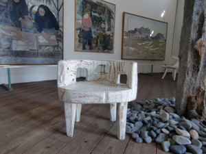 大石夫妻の絵画や彫刻、オブジェが敷地内に点在し、非日常な場所をつくりだしている。