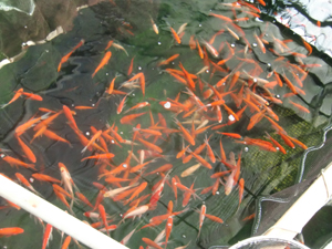 金魚で有名な大和郡山の養鯉場で金魚釣り(!)をしました。
