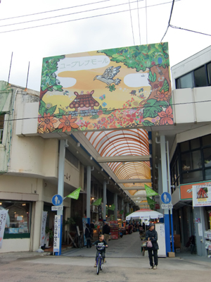 ゆうぐれなモールは石垣島一の繁華街。小さなアーケード街には土産物店がぎっしり。