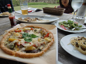 ランチはこんな素敵なレストランにて。気温20度前後なので屋外での食事もへっちゃら。