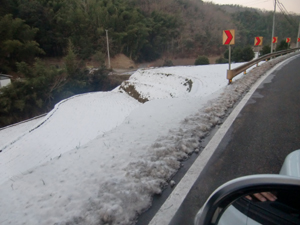 で、高松空港に着いて塩江を走る頃には雪景色。この温度差にやられた~。
