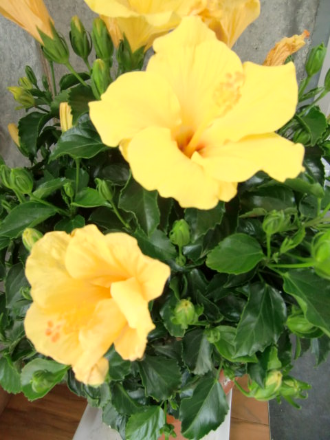 施主さんからこんなにカワイイ黄色のハイビスカスをいただきました。ありがとうございます!
