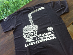 バックプリントは沖縄そば。沖縄そばはめっちゃウマイ!ってことですね。