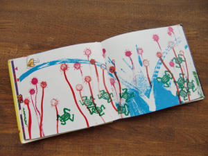 下左:全国の藍染作家さんが染めた布をつなげあわせた大型アート。