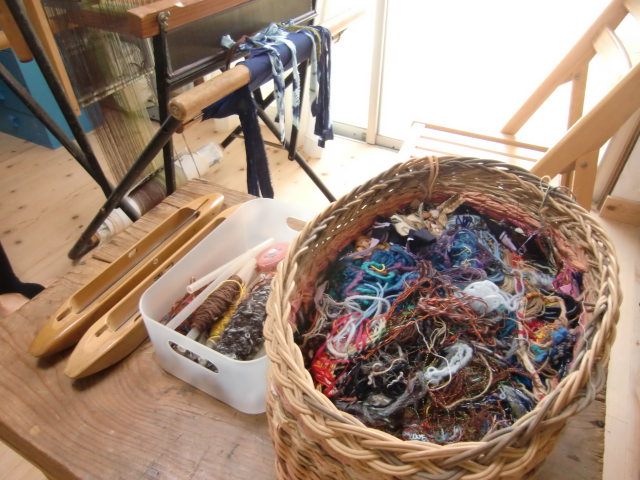 写真左のかごに盛られた糸くず、てっきりゴミかと思ってたら