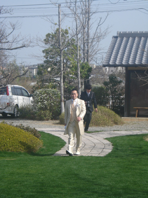 小径から颯爽と現れたのはファイヤーマンである新郎。かっこいい~!