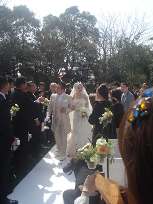 をした幸せいっぱいの2人は超笑顔でフラワーシャワーとともに退場。
