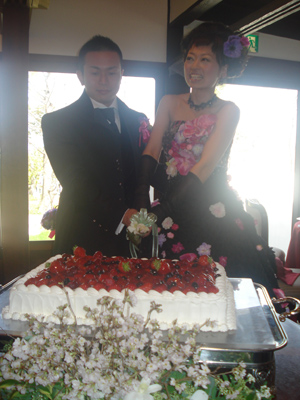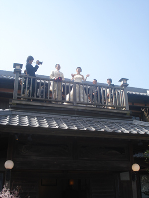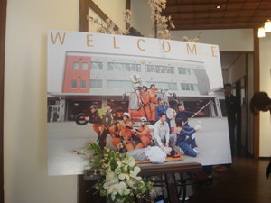 消防士の新郎のはからい(?)でしょうか?中央にはファイヤーマン姿の新郎新婦がいます。