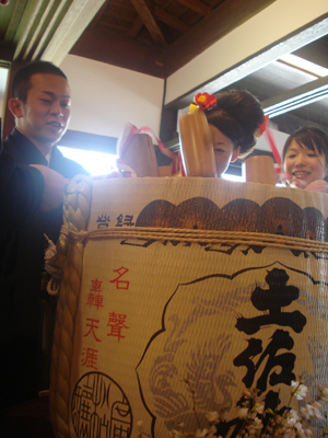 そして樽酒で鏡開き。この新婦、実は高知出身でめちゃめちゃお酒強いんです!
