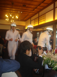 パーティでは新郎の同僚たち「エンジェル隊員(?)」によるサプライズ演出、