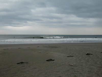強烈なオフショアと戦う左からniwarin,kei,takashi。